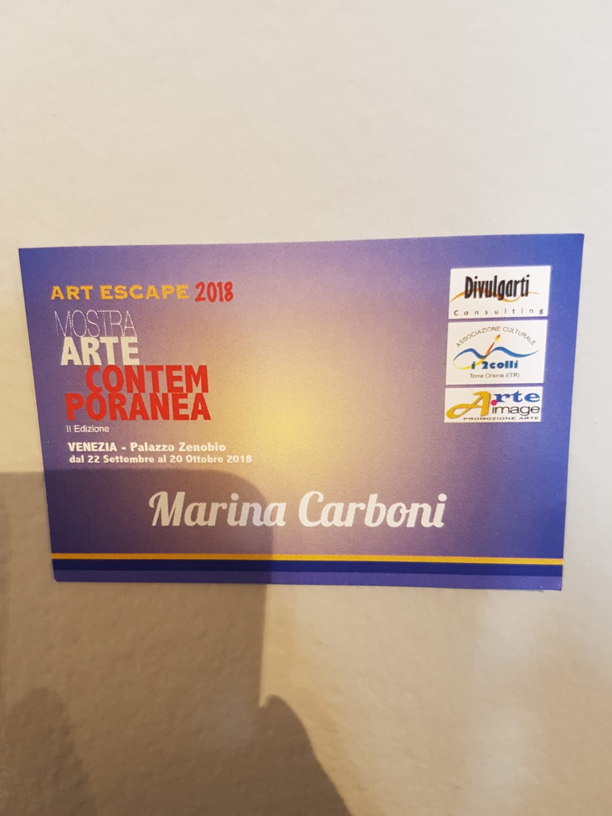 “Art Escape” nasce nel 2016 dalla collaborazione artistica delle associazioni Divulgarti Consulting di Genova e I 2colli di Terni. Il 22 settembre 2018 verrà inaugurata la seconda edizione presso lo spettacolare Palazzo Zenobio a Venezia, con l’aggiunta delle associazioni culturali Art Space di Milano e Il Cerchio Cromatico di Genova.